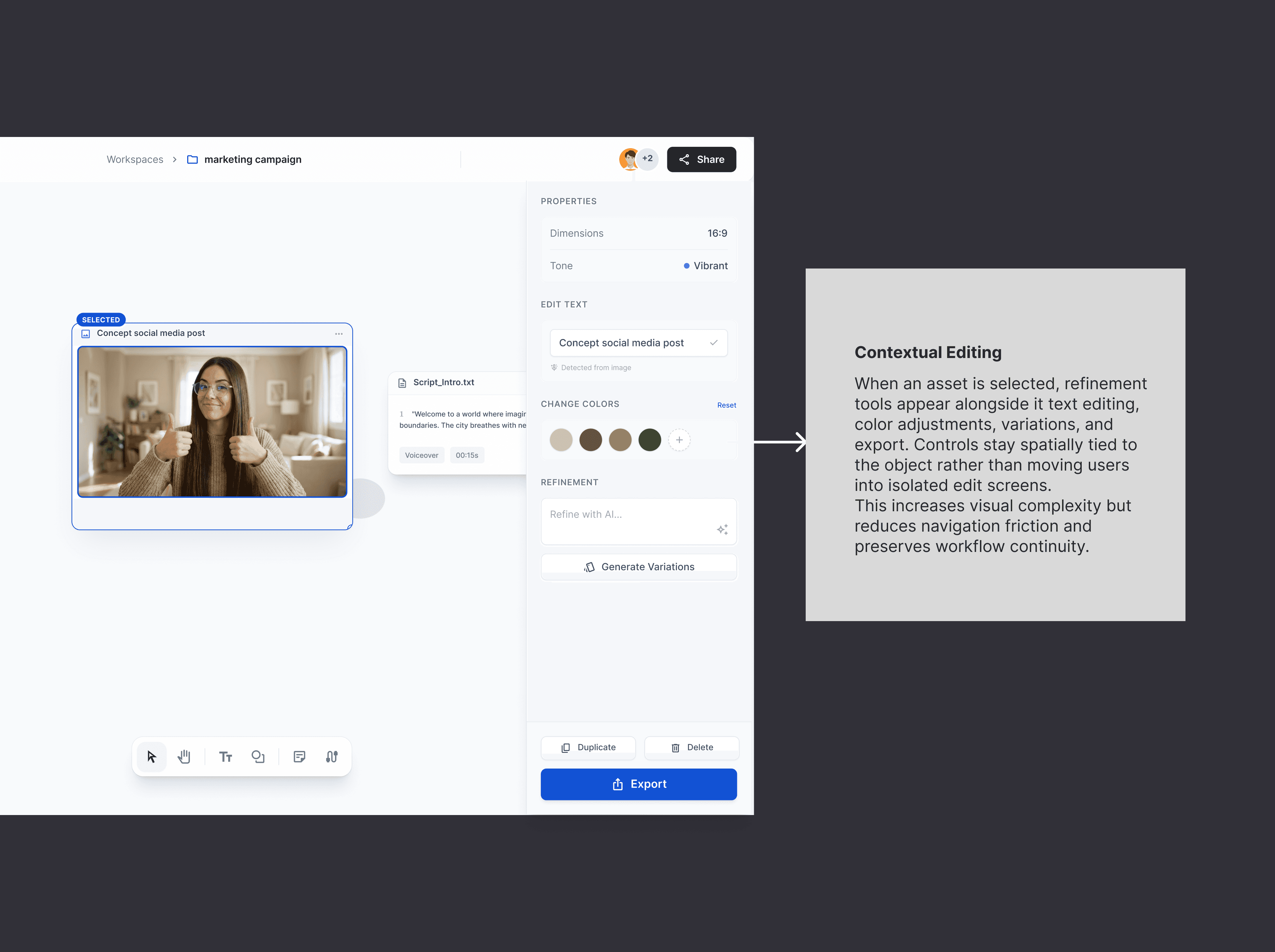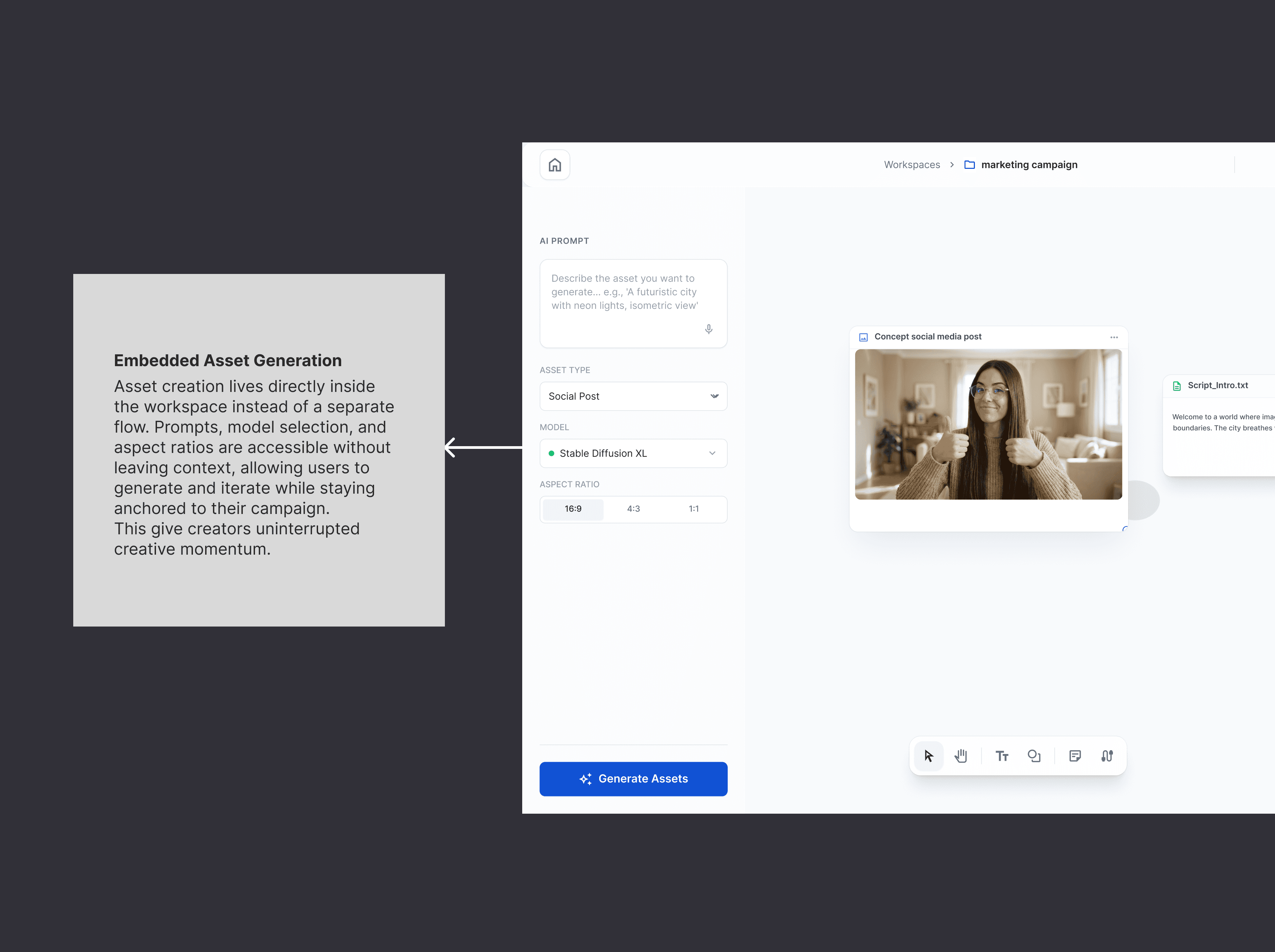 Designing a workspace-first AI creator studio that prioritizes flow over dashboards